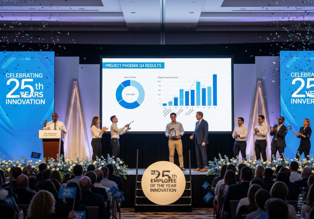 演出面では、映像や照明、音響はプロに依頼することでクオリティが大きく変わります。例えば、創業からの歩みを時系列で映像化し、最後に未来へのビジョンを提示する構成は、参加者の感情を大きく動かします。また、ARやプロジェクションマッピングを用いた先進的な演出は、SNSでの拡散効果も期待できます。